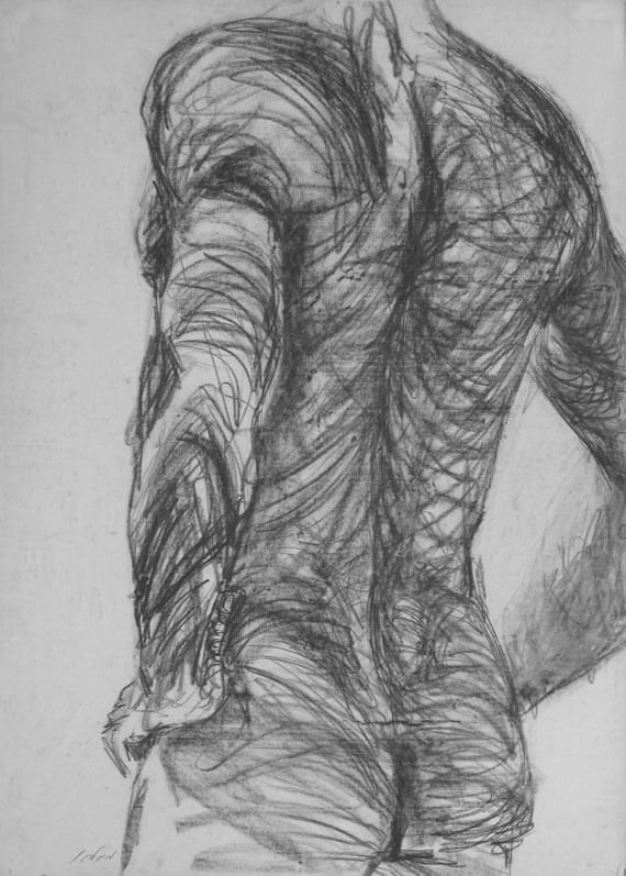 רישום דמות גבר, רישום פחם על נייר.