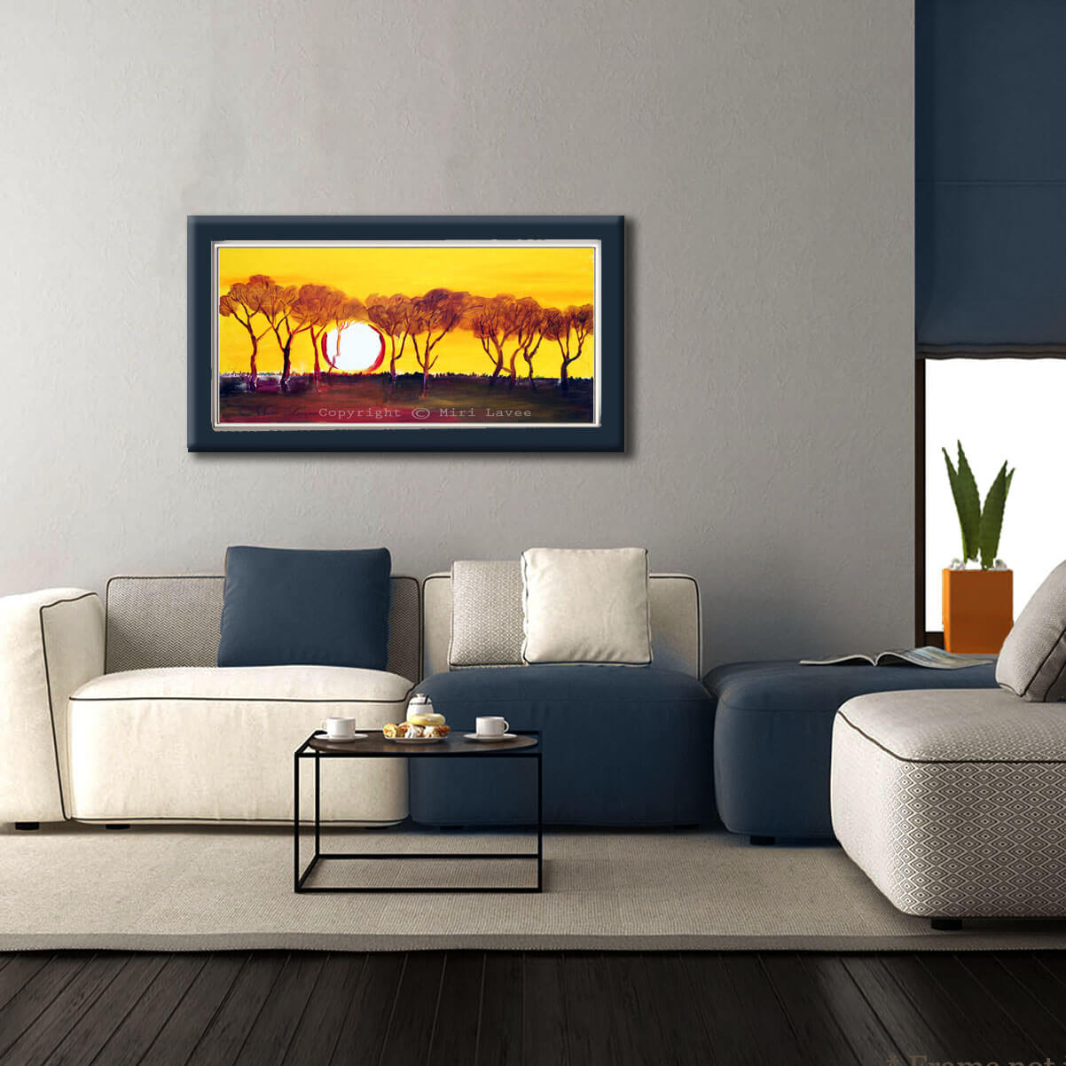 הציור “שקיעה זוהרת” הוא ציור נוף שמביא אליך את החוויה הזו ממש לתוך הבית.